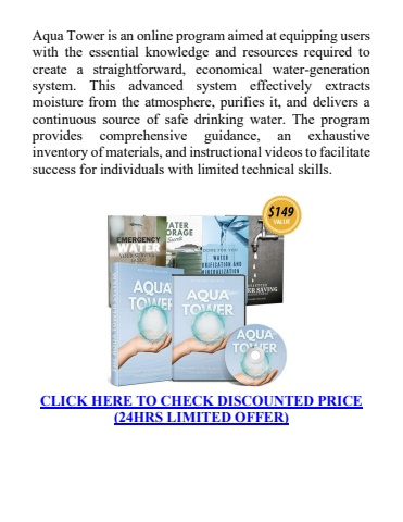 Aqua Tower is an online program aimed at equipping users with the essential knowledge and resources required to create a straightforward, economical water-generation system. This advanced system effectively extracts moisture from the atmosphere, purifies it, and delivers a continuous source of safe drinking water. The program provides comprehensive guidance, an exhaustive inventory of materials, and instructional videos to facilitate success for individuals with limited technical skills.CLICK HERE TO CHECK DISCOUNTED PRICE (24HRS LIMITED OFFER)
