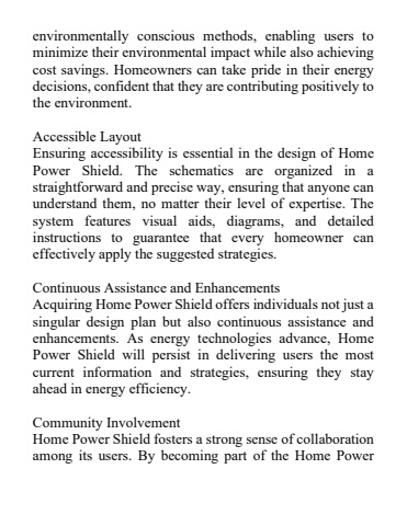 environmentally conscious methods, enabling users to minimize their environmental impact while also achieving cost savings. Homeowners can take pride in their energy decisions, confident that they are contributing positively to the environment.Accessible LayoutEnsuring accessibility is essential in the design of Home Power Shield. The schematics are organized in a straightforward and precise way, ensuring that anyone can understand them, no matter their level of expertise. The system features visual aids, diagrams, and detailed instructions to guarantee that every homeowner can effectively apply the suggested strategies.Continuous Assistance and EnhancementsAcquiring Home Power Shield offers individuals not just a singular design plan but also continuous assistance and enhancements. As energy technologies advance, Home Power Shield will persist in delivering users the most current information and strategies, ensuring they stay ahead in energy efficiency.Community InvolvementHome Power Shield fosters a strong sense of collaboration among its users. By becoming part of the Home Power