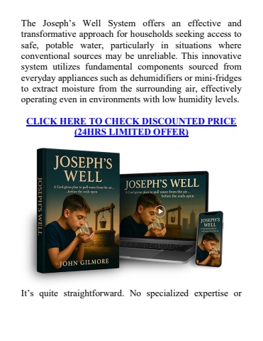 The Joseph%u2019s Well System offers an effective and transformative approach for households seeking access to safe, potable water, particularly in situations where conventional sources may be unreliable. This innovative system utilizes fundamental components sourced from everyday appliances such as dehumidifiers or mini-fridges to extract moisture from the surrounding air, effectively operating even in environments with low humidity levels. CLICK HERE TO CHECK DISCOUNTED PRICE (24HRS LIMITED OFFER)It%u2019s quite straightforward. No specialized expertise or