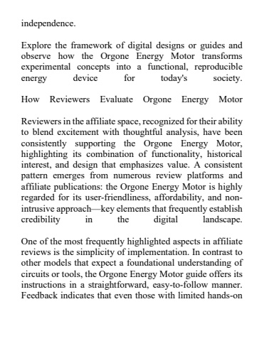 independence. Explore the framework of digital designs or guides and observe how the Orgone Energy Motor transforms experimental concepts into a functional, reproducible energy device for today's society. How Reviewers Evaluate Orgone Energy Motor Reviewers in the affiliate space, recognized for their ability to blend excitement with thoughtful analysis, have been consistently supporting the Orgone Energy Motor, highlighting its combination of functionality, historical interest, and design that emphasizes value. A consistent pattern emerges from numerous review platforms and affiliate publications: the Orgone Energy Motor is highly regarded for its user-friendliness, affordability, and nonintrusive approach%u2014key elements that frequently establish credibility in the digital landscape. One of the most frequently highlighted aspects in affiliate reviews is the simplicity of implementation. In contrast to other models that expect a foundational understanding of circuits or tools, the Orgone Energy Motor guide offers its instructions in a straightforward, easy-to-follow manner. Feedback indicates that even those with limited hands-on