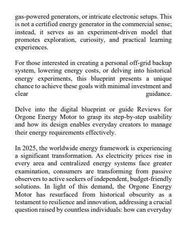 gas-powered generators, or intricate electronic setups. This is not a certified energy generator in the commercial sense; instead, it serves as an experiment-driven model that promotes exploration, curiosity, and practical learning experiences. For those interested in creating a personal off-grid backup system, lowering energy costs, or delving into historical energy experiments, this blueprint presents a unique chance to achieve these goals with minimal investment and clear guidance. Delve into the digital blueprint or guide Reviews for Orgone Energy Motor to grasp its step-by-step usability and how its design enables everyday creators to manage their energy requirements effectively. In 2025, the worldwide energy framework is experiencing a significant transformation. As electricity prices rise in every area and centralized energy systems face greater examination, consumers are transforming from passive observers to active seekers of independent, budget-friendly solutions. In light of this demand, the Orgone Energy Motor has resurfaced from historical obscurity as a testament to resilience and innovation, addressing a crucial question raised by countless individuals: how can everyday