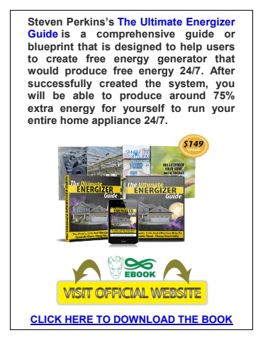 Steven Perkins%u2019sTheUltimateEnergizerGuideis a comprehensive guide or blueprint that is designed to help users to create free energy generator that would produce free energy 24/7. After successfully created the system, you will be able to produce around 75% extra energy for yourself to run your entire home appliance 24/7.CLICK HERE TO DOWNLOAD THE BOOK