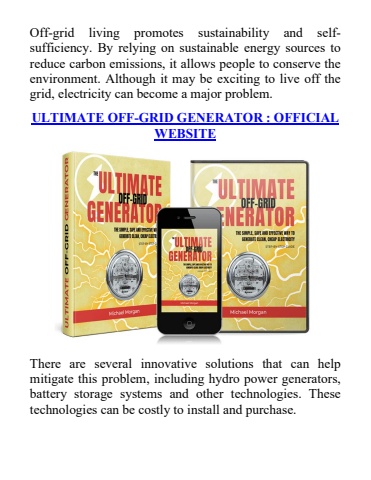 Off-grid living promotes sustainability and selfsufficiency. By relying on sustainable energy sources to reduce carbon emissions, it allows people to conserve the environment. Although it may be exciting to live off the grid, electricity can become a major problem.ULTIMATE OFF-GRID GENERATOR : OFFICIAL WEBSITEThere are several innovative solutions that can help mitigate this problem, including hydro power generators, battery storage systems and other technologies. These technologies can be costly to install and purchase.